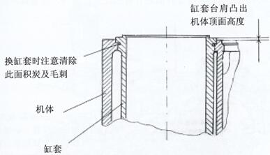 提示:检测缸套台肩凸出高度超差可把缸套互相调换试配来达到,要求相邻缸套凸出高度不大于0.04mm