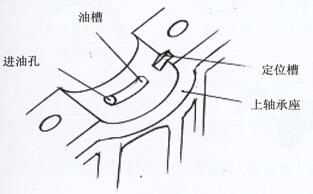 围。座孔分开面上开有轴瓦定位槽,瓦唇与座孔槽对正。同时要求轴瓦油孔与座孔上油孔对正,参见图2-3-9 (对YC6L机,轴瓦座上开有油槽,故轴瓦油孔不存