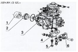 1、喷油泵 2、连接板 3、油泵齿轮 4、提前器