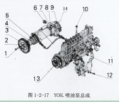 图1-2-14 YC6105ZQ喷油泵总成示意图