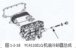 单体式的YC6105ZLQ、YC6112机型机油散器拆卸时只需把散热器盖上的出