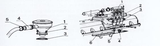 1、呼吸器 2、螺栓M6×10 3、呼吸器垫片 4、连接胶管理 5、环箍拆松呼吸器上的环箍或进气管上的固定螺栓,将呼吸器及其通风管从缸盖罩或机体中取出即可。